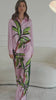 Laid-back ease with high-impact print. These wide-leg lounge pants are cut from pure silk for a fluid, weightless feel, showcasing our Kumulau illustration; vibrant, hand-painted foliage scaled to flatter and placed to elongate the leg. A contrast side stripe sharpens the silhouette, giving the softness of loungewear a more tailored edge.