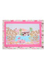 Our Pink Flamingo Club scarf captures a sun-drenched poolside scene framed in bold pink. Palm trees, striped parasols and a flamingo float set against clear blue water create a transportive composition that feels both playful and polished.