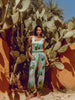 The hand-illustrated cactus and bloom motif adds character to an otherwise classic shape, making it versatile yet distinctive.